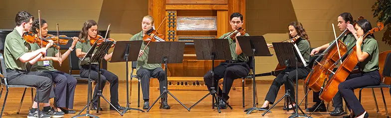 Vistas share the same orchestra as At First Sight (advanced), and have their own chamber ensembles with both coaching and rehearsal times. The rest of the time, they give back to AFS as sight-reading guides for the younger students, and assistants to the faculty and directors. They may also work as equipment managers, hospitality assistants, or registration ambassadors.
